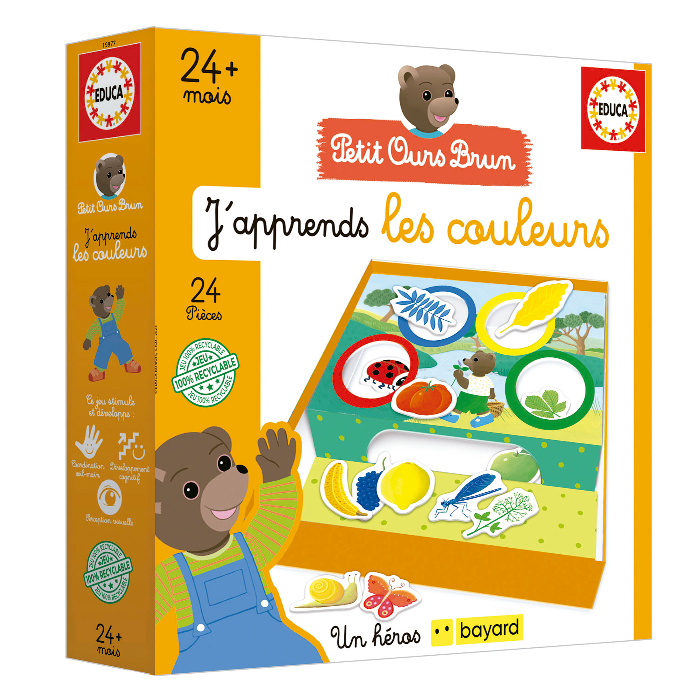 Le jeu pour apprendre les formes géométriques avec le PETIT OURS BRUN. Contient 4 plateaux et 12 pièces à encastrer.