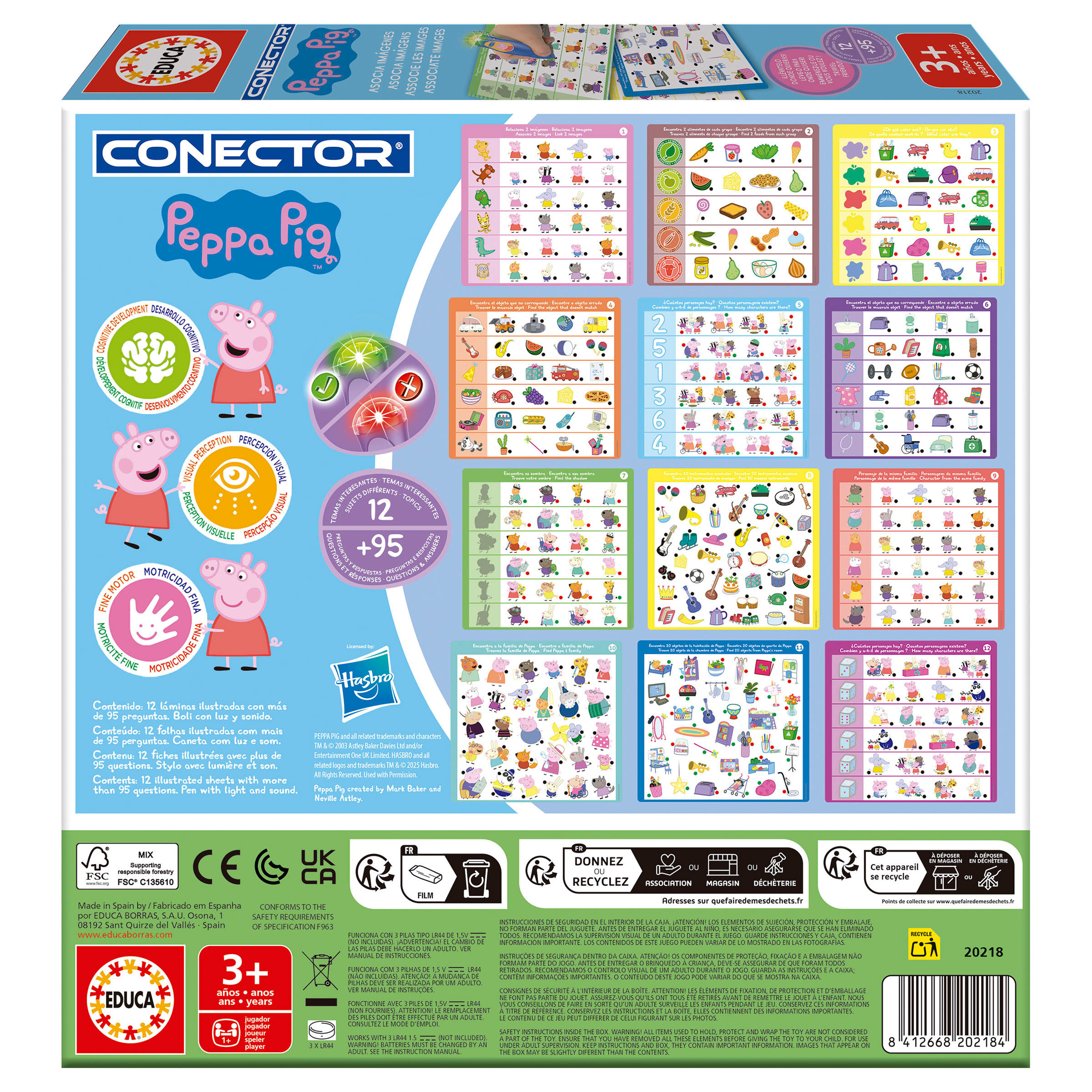 Emporte-le partout avec toi ! Nouveau PEPPA PIG JUNIOR CONNECTEUR en format livre avec stylo avec son et lumière. Jeu de questions-réponses pour les plus petits avec les thèmes les plus intéressants tels que : les couleurs, les formes, les silhouettes, les animaux, et bien d’autres encore. Jeu éducatif d’association de questions et de réponses où les enfants stimuleront leur observation, leur perception visuelle, leur discrimination, etc.