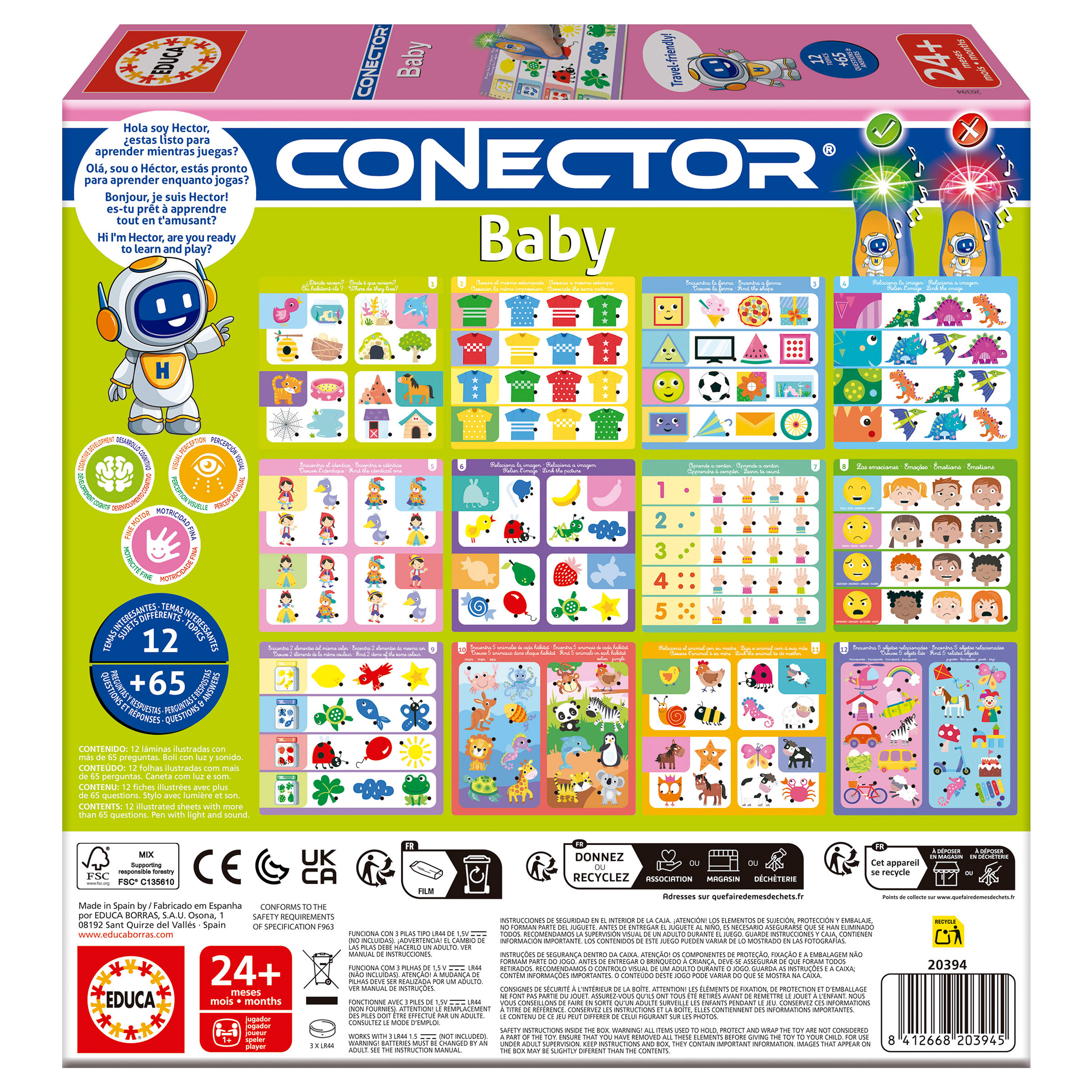Nouveau BABY Conector en format livre avec stylo avec son et lumière. Jeu de questions-réponses pour les plus petits avec les thèmes les plus intéressants tels que : les couleurs, les formes, les silhouettes, les animaux, et bien d’autres encore.