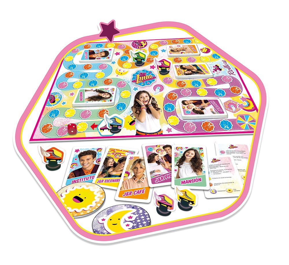 Luna, la vedette de la nouvelle série de Disney Channel (Soy Luna) est aussi la figure principale des puzzles d’Educa et du nouveau jeu de société de Borras : Le jeu de Luna. Luna adore faire ce que n’importe quelle fille de son âge aime faire : patiner, sortir avec ses amis, chanter… Avec cette gamme de produits, les joueurs pourront vivre les aventures de cet univers.