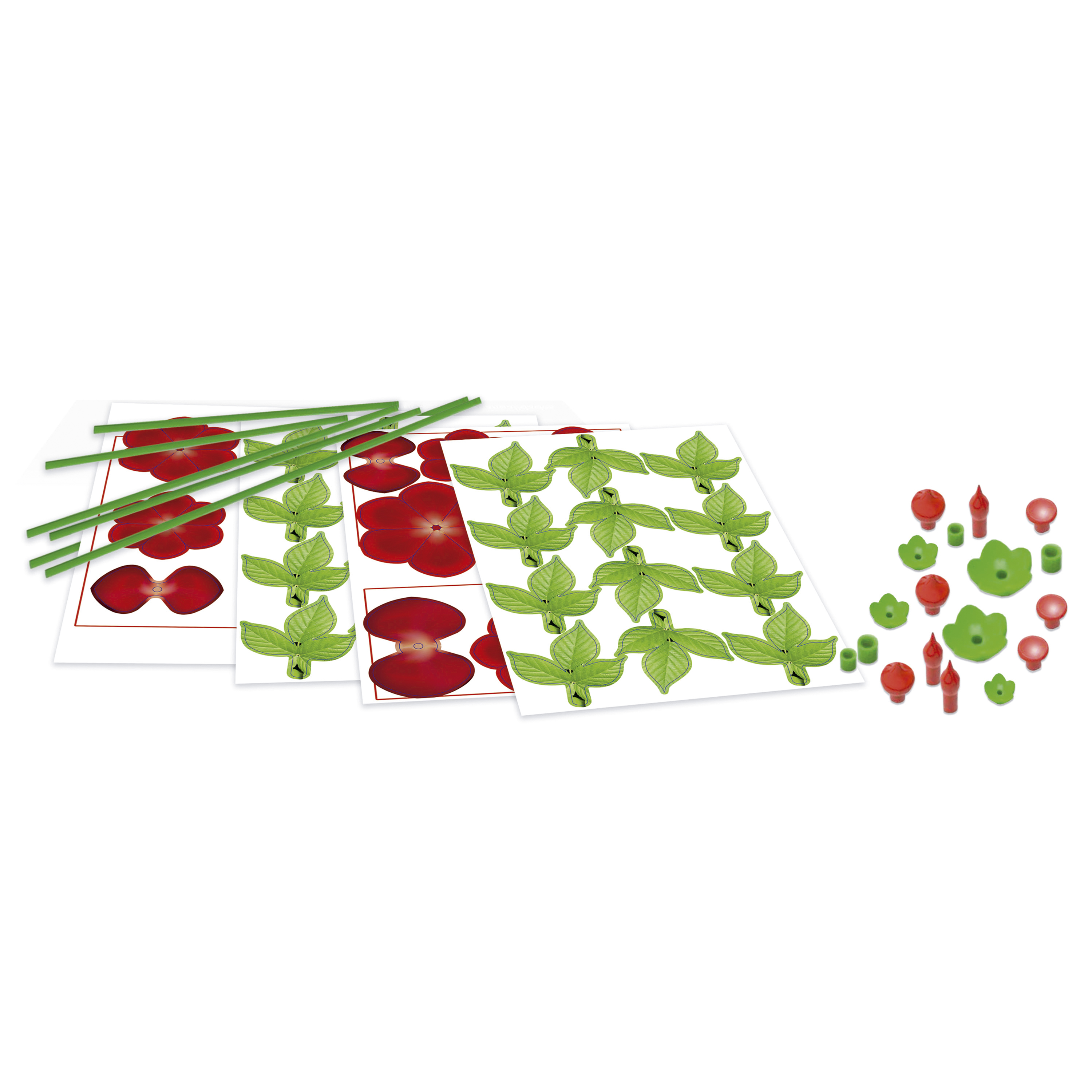 A caixa inclui todos os elementos necessários para criar o seu bouquet de rosas da nossa nova série floral. Conteúdo: – Cartão cortado, folhas de papel pré-cortadas impressas em ambos os lados, tubo de plástico cortado em diferentes tamanhos, grelha de plástico verde, grelha de plástico amarela.