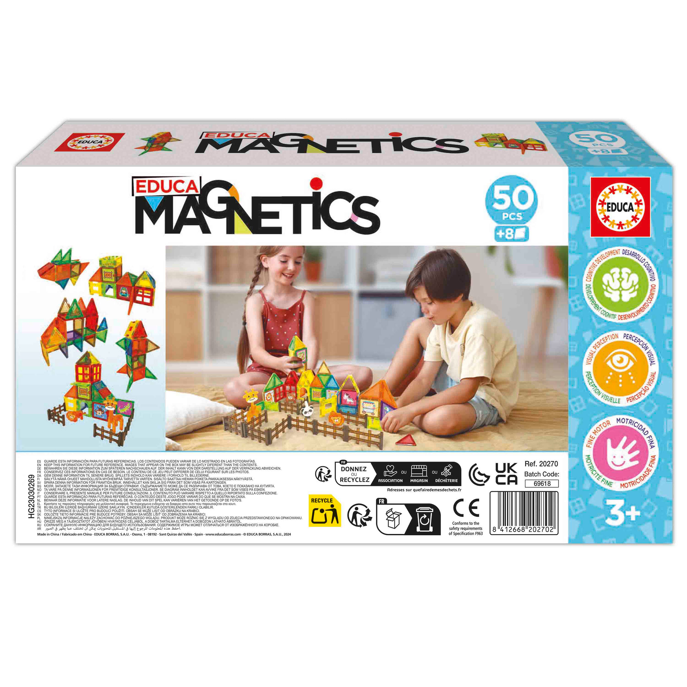 O Educa Magnetics é composto por 50 unidades de blocos magnéticos 3D que permitem que crianças a partir de 3 anos criem figuras geométricas. Enquanto brincam, elas aprendem naturalmente os princípios dos ímãs e da força magnética.