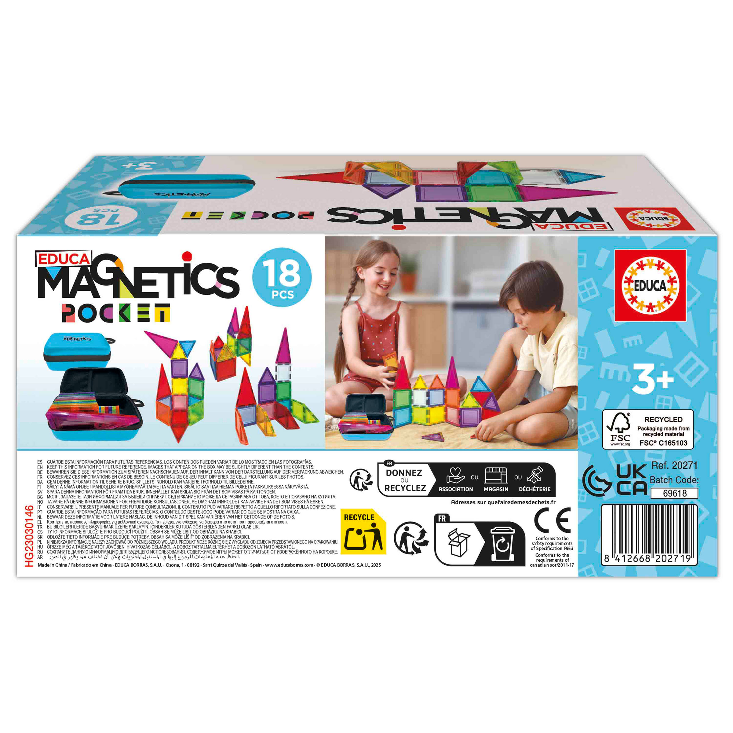 O Educa Magnetics é composto por 18 unidades de blocos magnéticos 3D que permitem que crianças a partir de 3 anos criem figuras geométricas. Enquanto brincam, elas aprendem naturalmente os princípios dos ímãs e da força magnética.