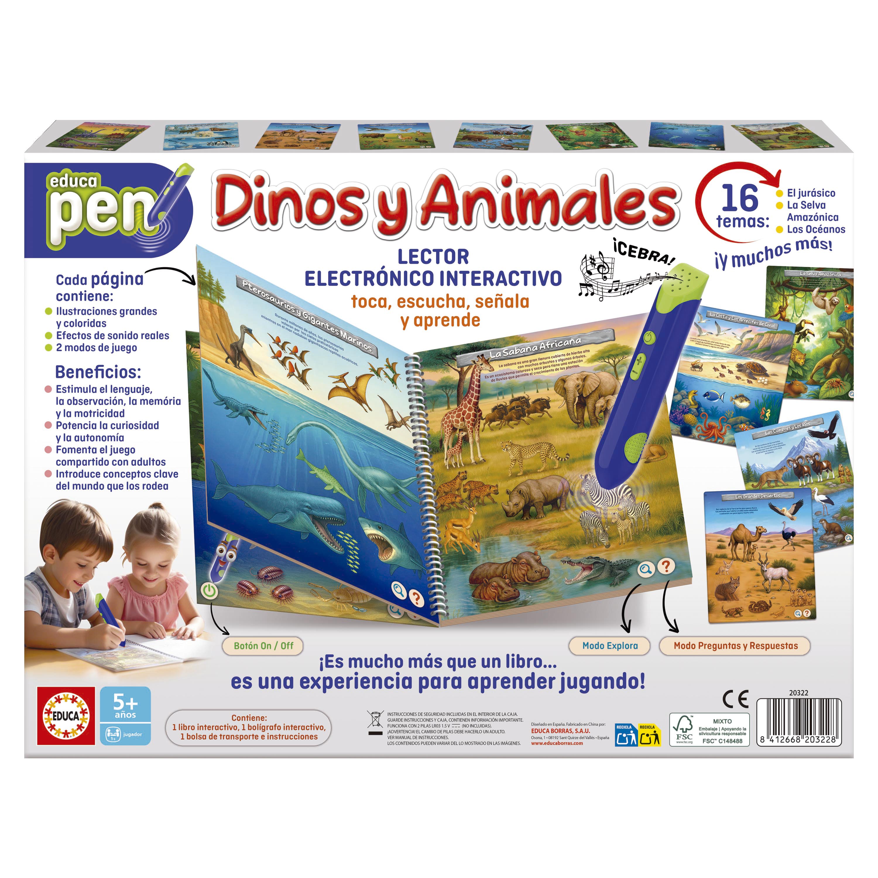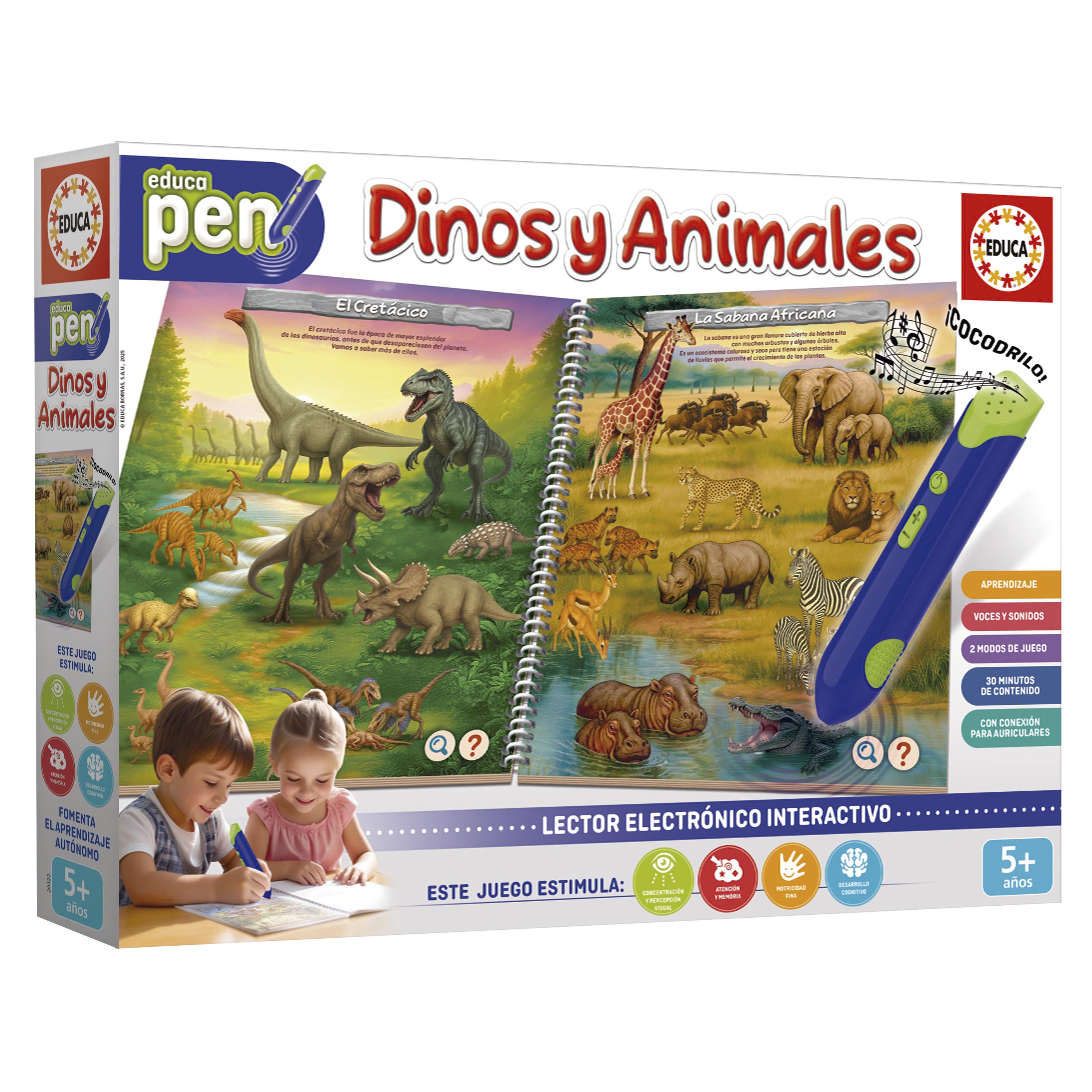 Educa Pen es un sistema educativo, interactivo y dinámico que combina dos modos de juego; aprendamos y encuentra la respuesta. Es un bolígrafo interactivo que al tocar imágenes o textos reproduce sonidos y explica distintas temáticas. Cada libro contiene 8 láminas (doble cara) con temáticas adaptadas a cada edad. Incluye conexión para auriculares, bolsa para llevártelo donde quieras y no incluye baterías.